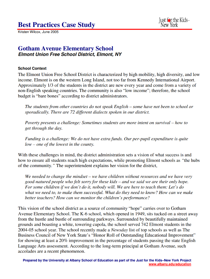 Best Practices Elementary Study Gotham Avenue ES Date June 17, 2005 June 17, 2005 Click to read more! Read More