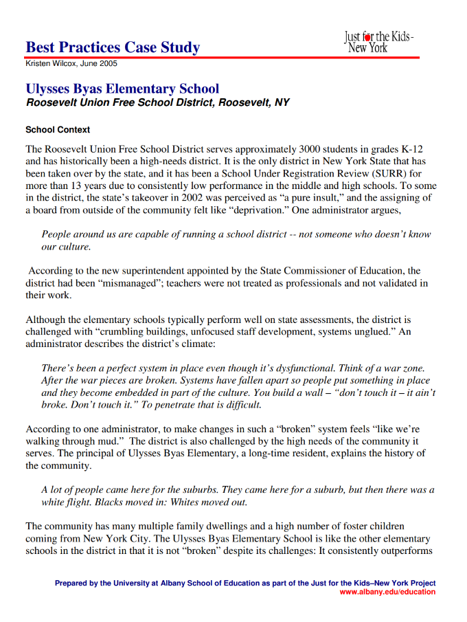 Best Practices Elementary Study Ulysses Byas ES Date June 20, 2005 June 20, 2005 Click to read more! Read More
