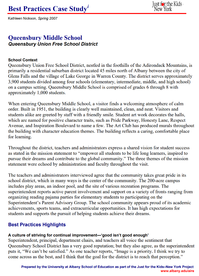 Middle School Best Practices Queensbury MS Date March 17, 2007 March 17, 2007 Click to read more! Read More