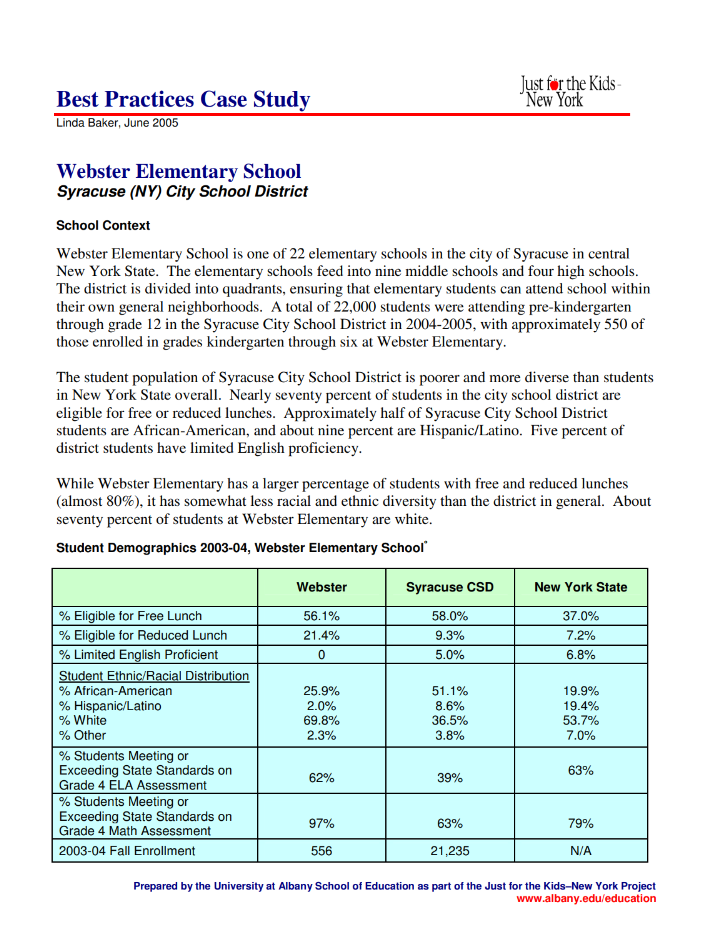 Best Practices Elementary Study Webster ES Date June 17, 2005 June 17, 2005 Click to read more! Read More