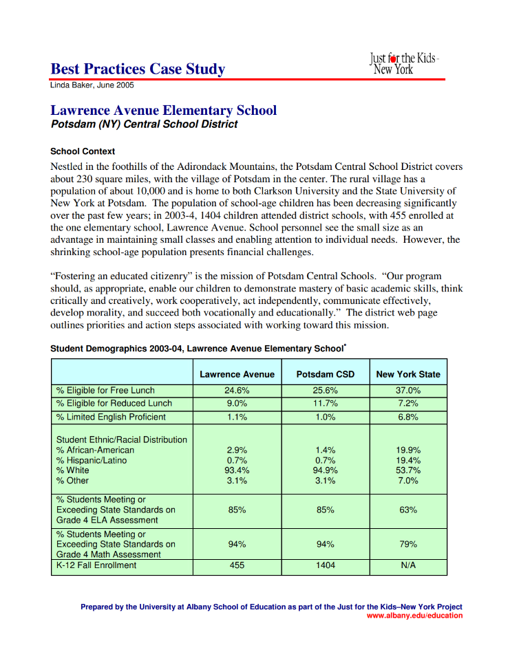 Best Practices Elementary Study Lawrence Avenue ES Date June 12, 2005 June 12, 2005 Click to read more! Read More