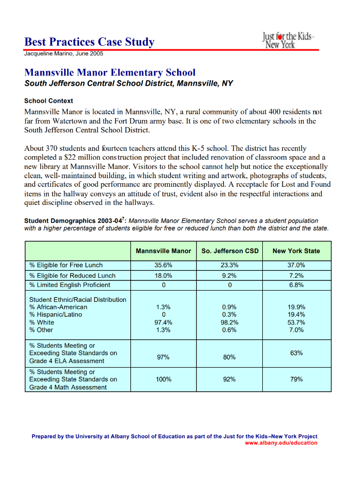 Best Practices Elementary Study Mannsville Manor ES Date June 5, 2005 June 5, 2005 Click to read more! Read More